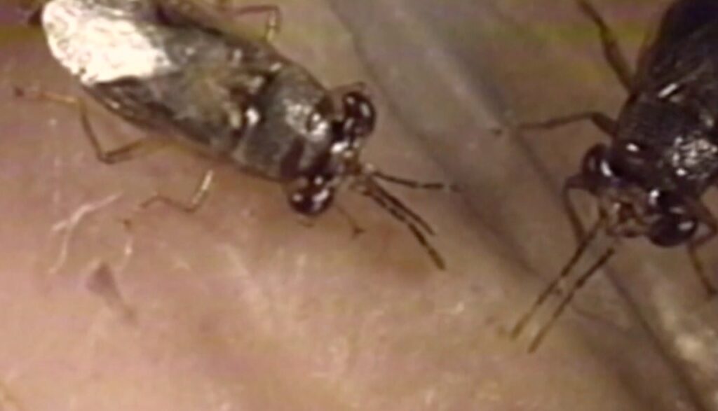 Figure 3 (Feb. 22, 2026 Blog)Showing two Geocoris punctipes feeding on the Cohen 1985 artificial diet made from beef liver, ground beef, and sucrose solution.