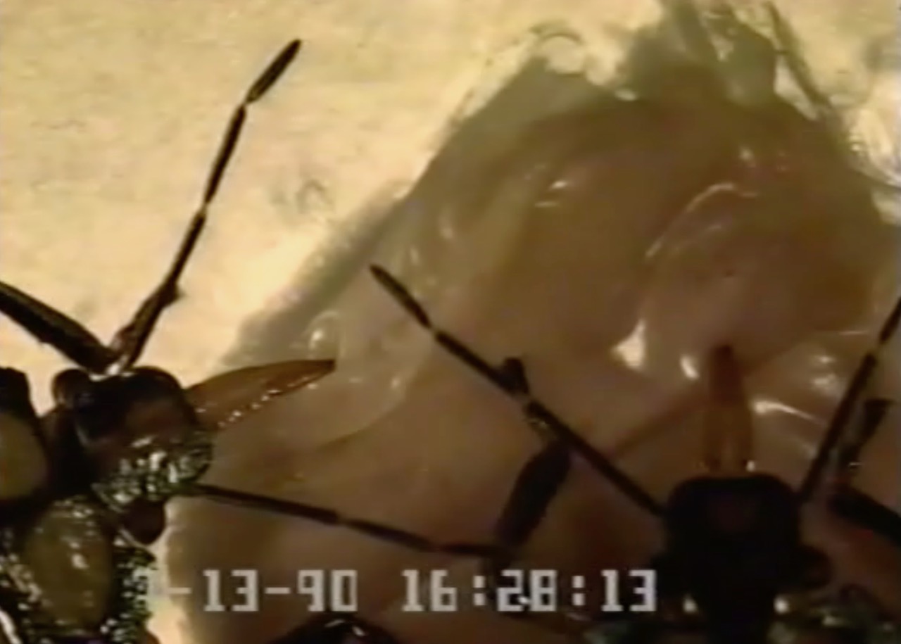 Figure 3 (Feb. 22, 2026 Blog)Showing two Geocoris punctipes feeding on the Cohen 1985 artificial diet made from beef liver, ground beef, and sucrose solution.